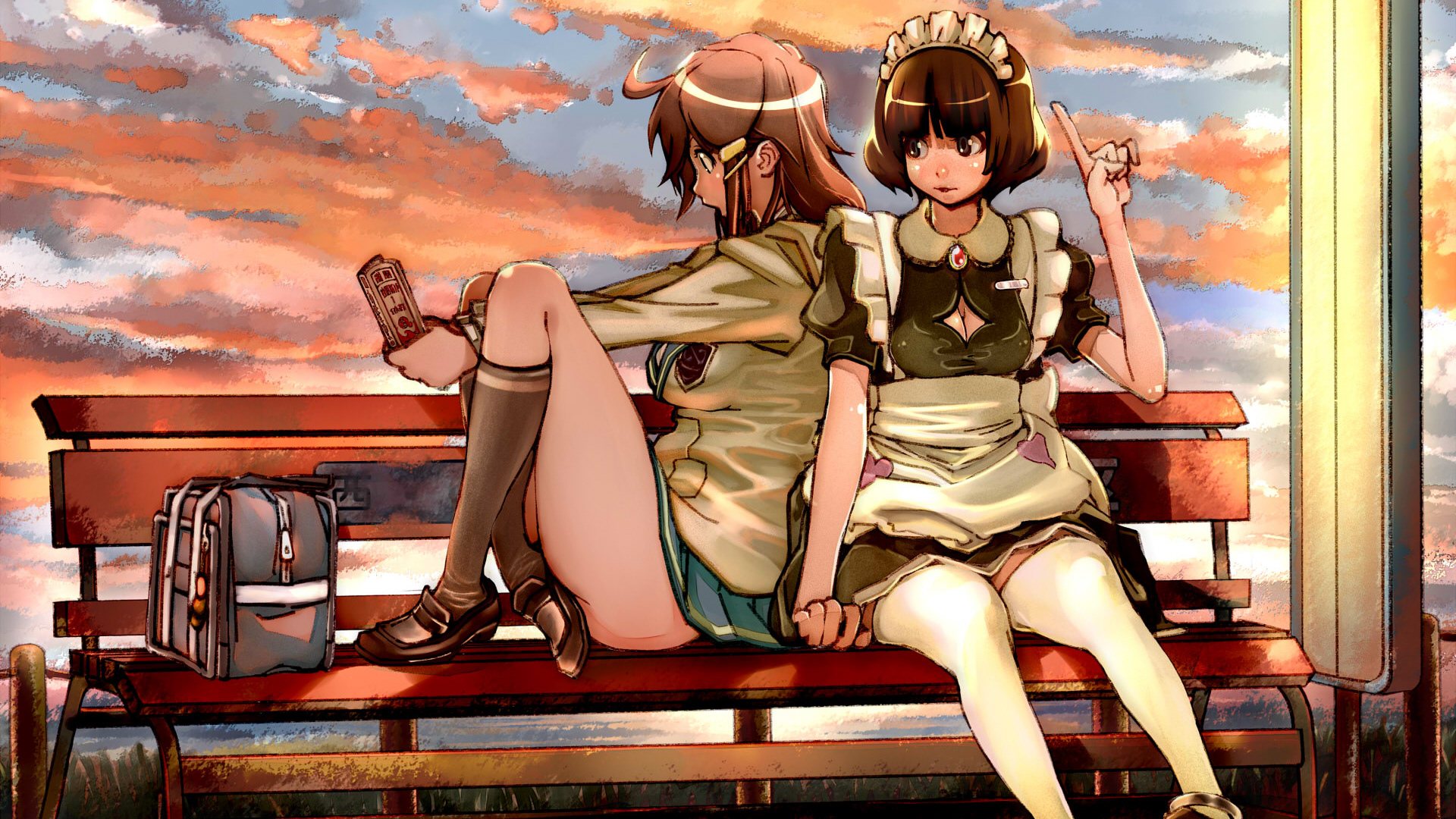 肉串が好きなメイドイラスト